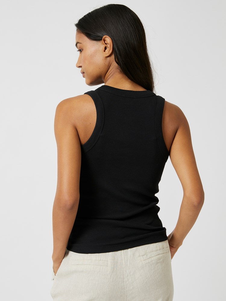 Singlet i behagelig rib av bomull med god stretch og fine ribkanter. Singleten har rund hals. Ettersittende passform. Modellene er 175cm og 176cm og har på seg str S.
