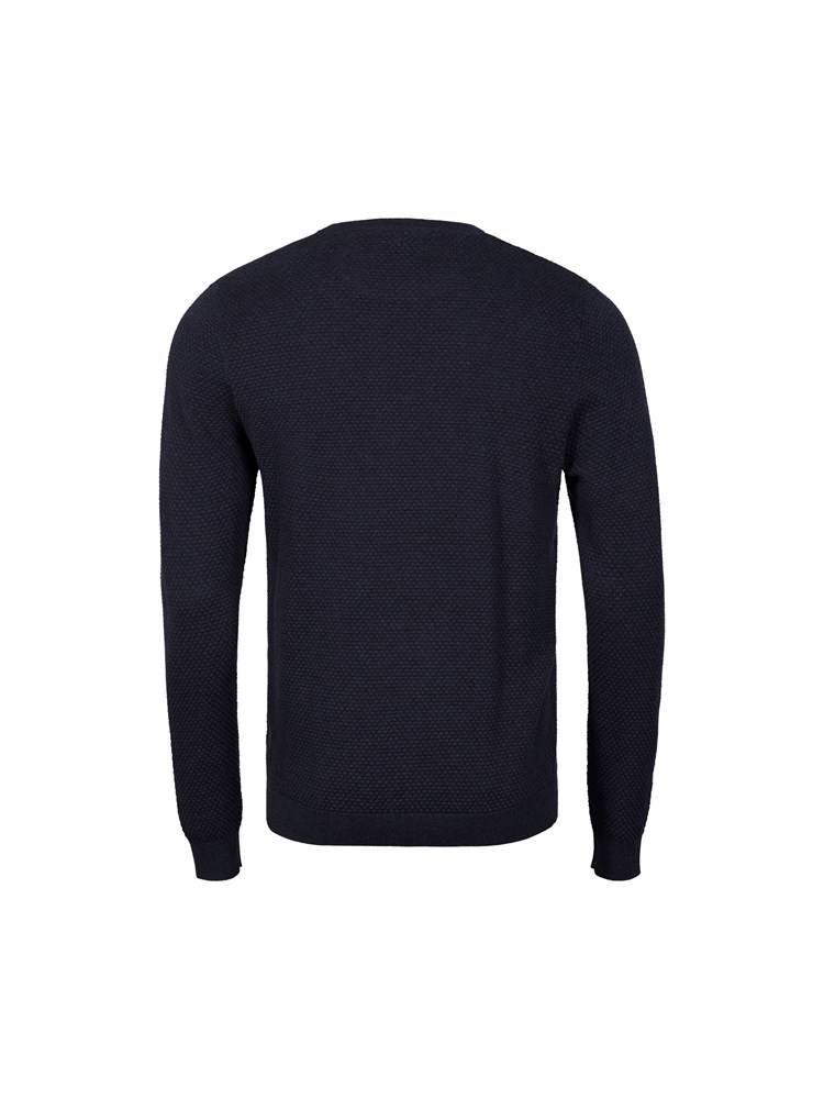 Behagelig genser i strukturstrikket bomull. Genseren har rund hals med innvendig kontrastdetalj,, ribbestrikkede vrangborder og normal passform.