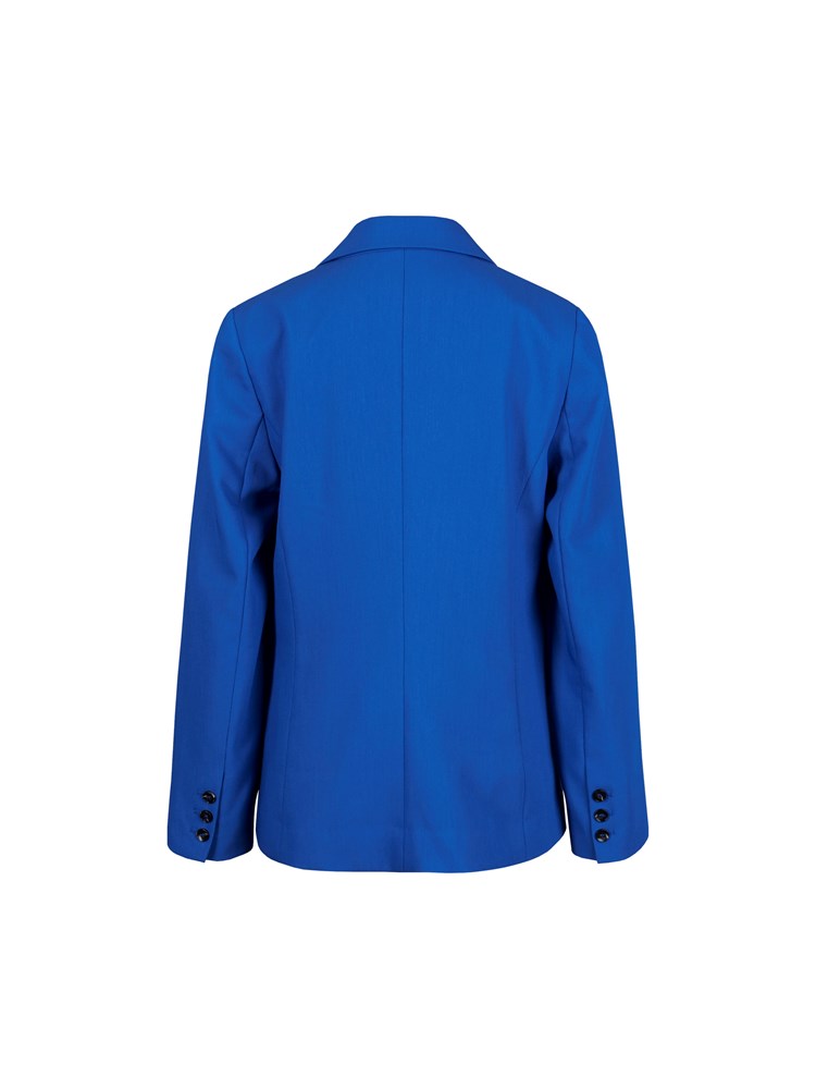 Tidsriktig blazer i behagelig kvalitet med god stretch og feminin passform. Blazeren har passepoilerte lommer, knapper på ermet, ton i ton fôr, og lukkes i front med en knapp. Kjøp gjerne Colour bukse for komplett dress.