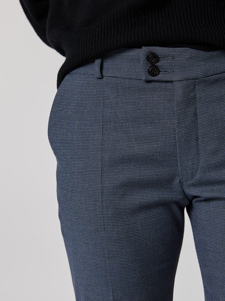 Klassisk dressbukse med ankel-lengde og feminin passform. Buksen er en del av Riccoveros Shape Collection, og har derfor en passform tilpasset kvinnelige former. Kvaliteten har fint fall, krøller lite og har god elastisitet. Modellen er 176cm og har på seg str 36.