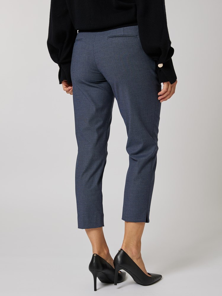 Klassisk dressbukse med ankel-lengde og feminin passform. Buksen er en del av Riccoveros Shape Collection, og har derfor en passform tilpasset kvinnelige former. Kvaliteten har fint fall, krøller lite og har god elastisitet. Modellen er 176cm og har på seg str 36.