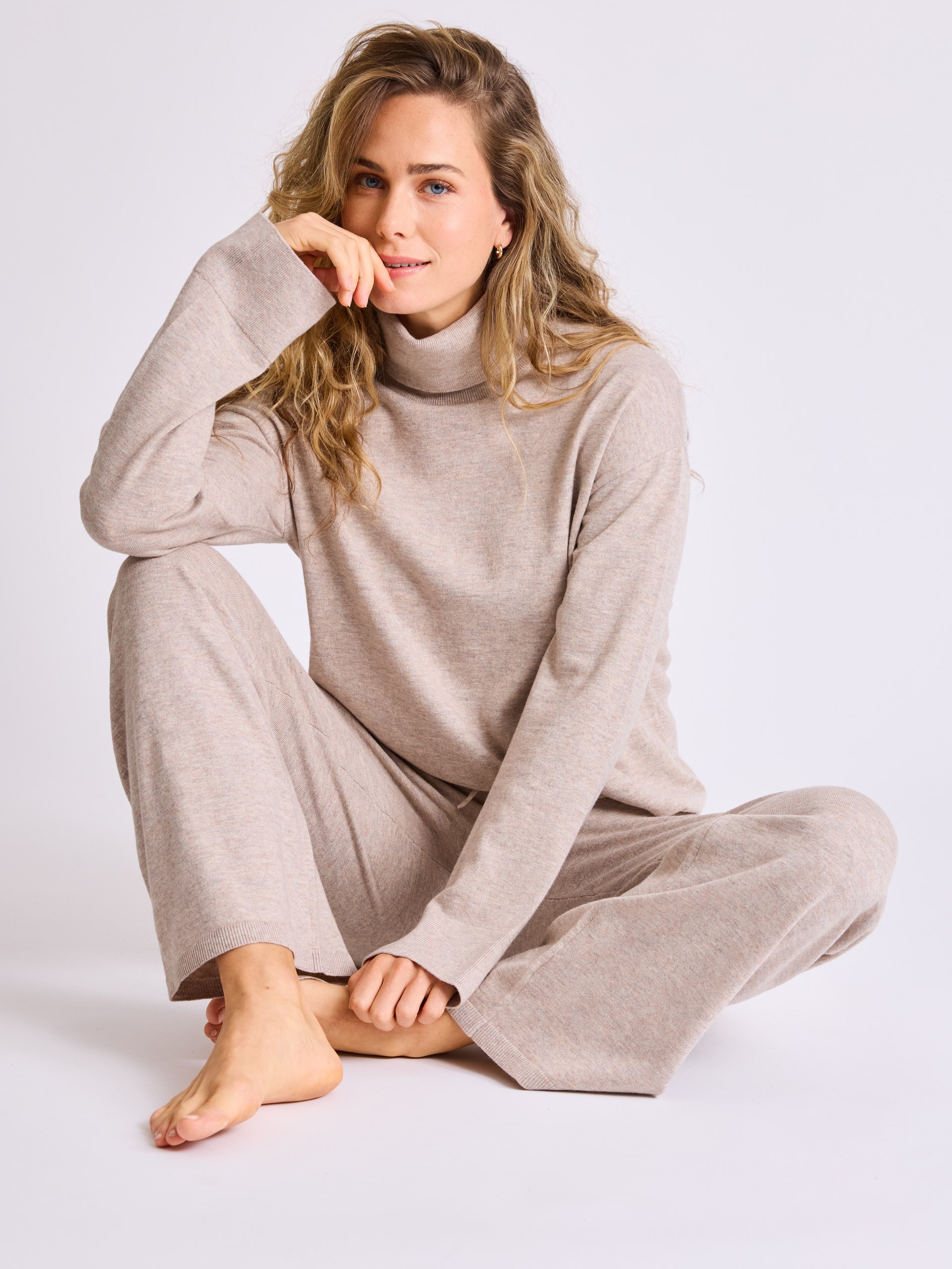 Strikket bukse i myk merinoull og bomull. Kjøp gjerne med Helle høyhalset genser for komplett sett
