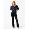 Ine Bellbottom er laget i 12.5 oz sort "stayblack denim" som bevarer fargen over tid og samtidig har svært god elastisitet og mykhet. Buksen har smal setevidde, normal livhøyde, og flared ben med high waist som gir en flatterende silhuett. Glidelåsgylf med knapp i front og logobadge i livet bak.