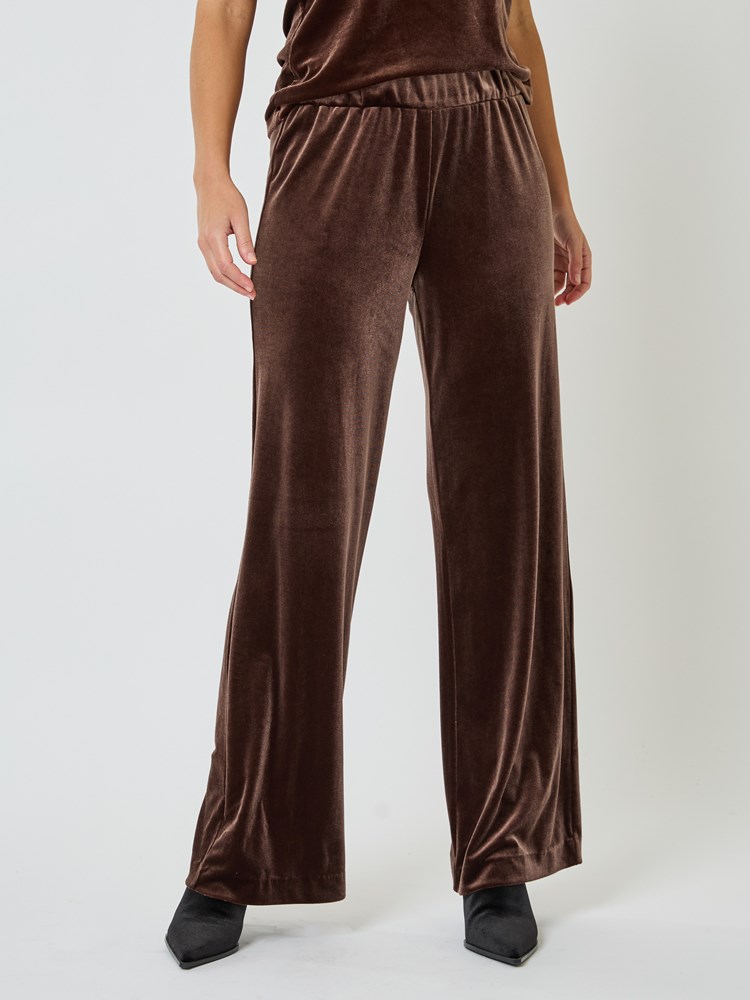 Velourbukse i resirkulert polyester med elastan. Buksen har medium høyt liv, elastiskk i livet og rette vide ben. Kjøp gjerne med Juliet blazer for komplett sett.