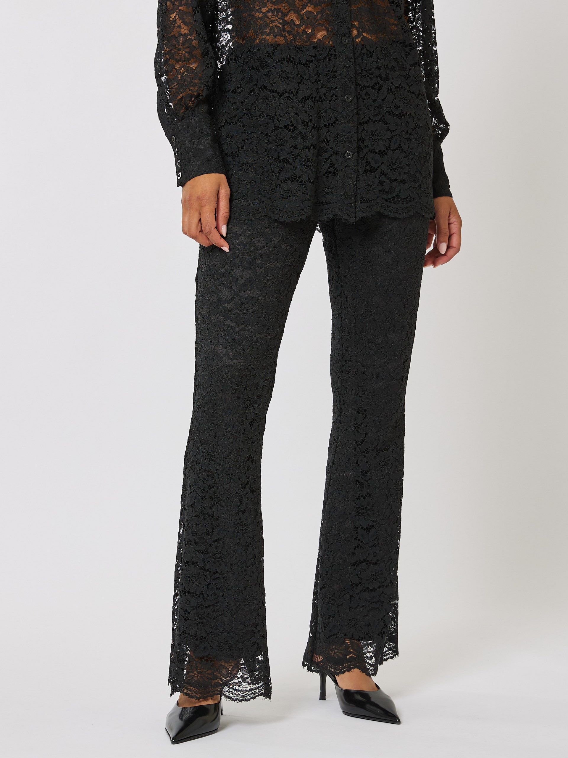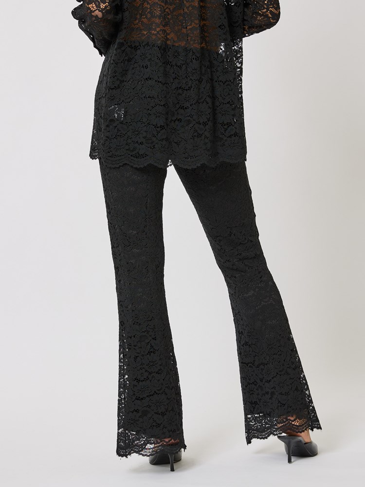 Bukse i blondekvalitet med innvendig fôr, mellomhøyt liv og linning med elastikk og glidelås i siden. Buksen har delikat scallop-kant nederst og sleng i beina. Kjøp gjerne med Sera skjorte for komplett sett. Modellen er 175cm og har på seg str 36.