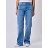 5 lommers mellomblå jeans med normal livhøyde, elastisk linning og lukning i front med knapp og glidelås. Vide ben