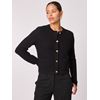 Strukturstrikket klassisk cardigan. med gullfargede logoknapper i front. Cardiganen har rund hals, lommer i front og rett kort passform. Kommer i to varianter, en stripet, og en ensfarget.