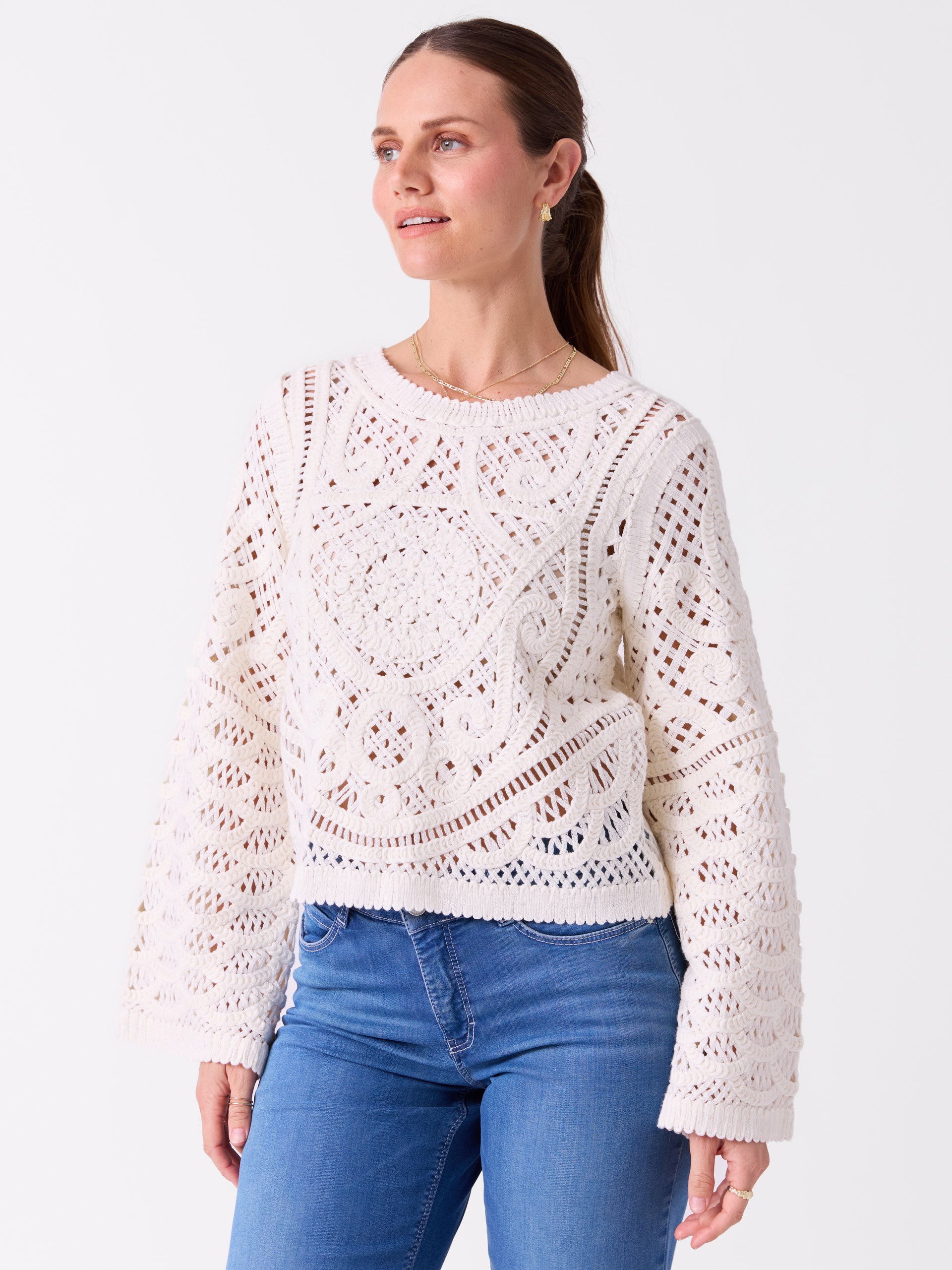 Hullstrikket genser i mellomtykk bomullskvalitet