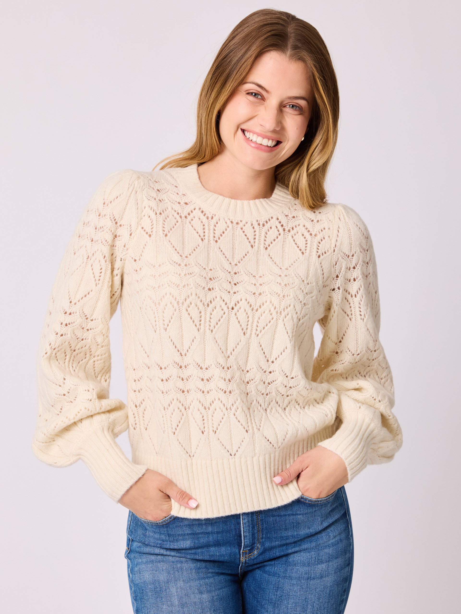 Pointellestrikket genser i behagelig ull og bomullsblanding