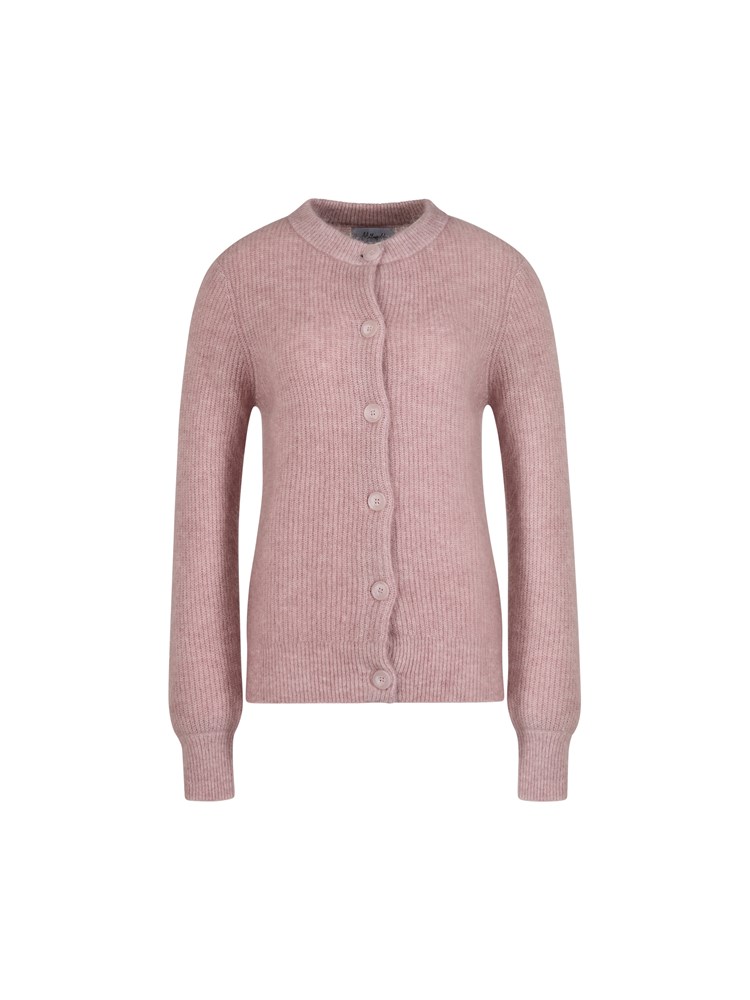 Cardigan i delikat melert ullblanding med lang erm med høy ribbestrikket mansjett. Cardiganen har rund hals, ton i ton knapper i front og normal passform. Modellen er 175cm og har på seg str S.