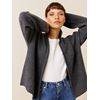 Finstrikket behagelig ullcardigan med boxy passform og smale ribkanter. Cardiganen er i 100% ull, har en liten metallbadge med logo nede på siden og sømdetalj i ryggen. Modellen er 167 cm høy og har på seg str S.