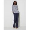 Delikat stripet T-skjorte i myk jersey med 3/4 lange ermer. T-skjorten har båthals og brodert logo på bryst. Ledig passform. Modellen er 177 cm høy og bruker str S.