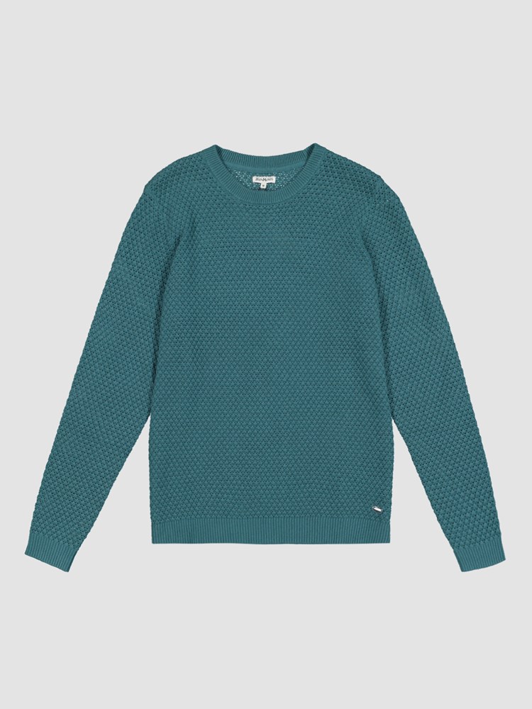 Mønsterstrikket genser i myk bomull med rund hals og ribbestrikkede vrangborder. Genseren har en liten sølvfarget logobadge og har en klassisk passform.