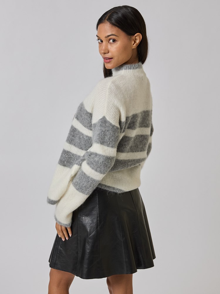 Blokkstripet genser i ledig passform med splitter i sidene, halsåpning med ribkant, dropshoulder og rette ermer. Genseren er i en behagelig ullblanding med forsterkende nylon med elastan for komfort. Modellen er 175cm og har på seg str S.
