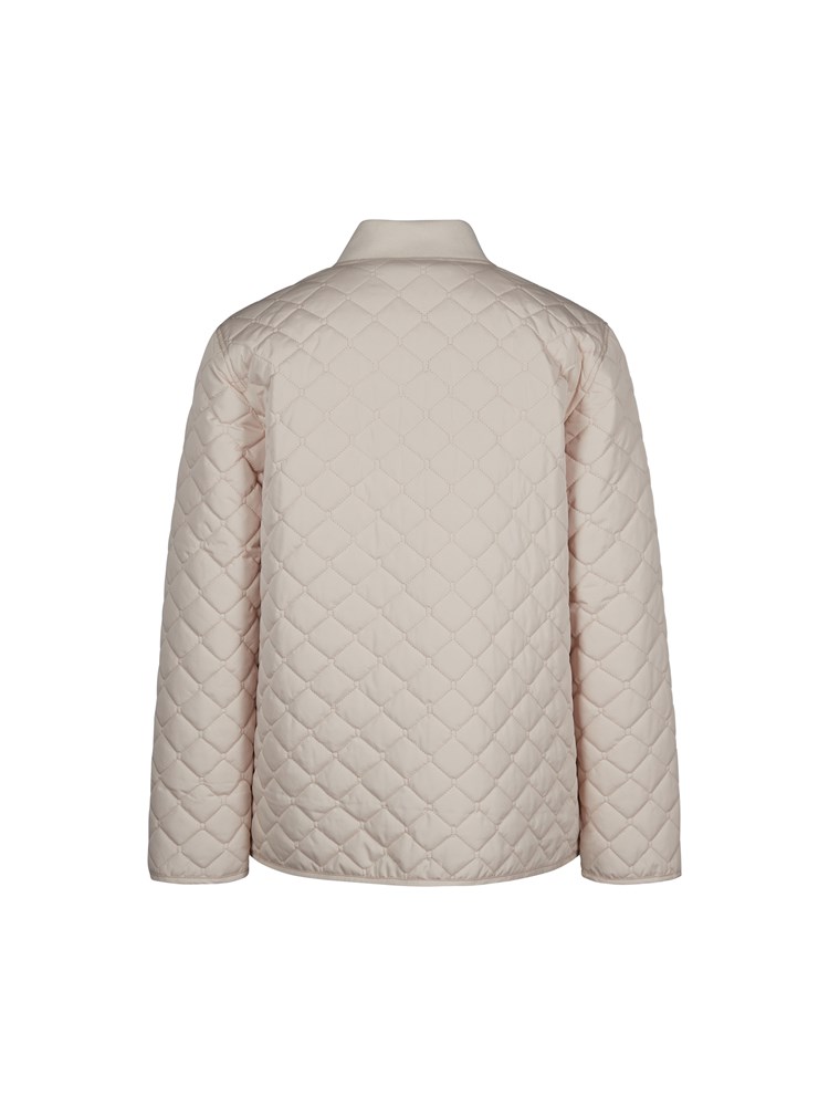 Lett vårjakke i quiltet materiale med lett vattering og glidelåslukning i front. Jakken har har rett passform, skrå lommer, rett avslutning på ermet og liten ribkrage.