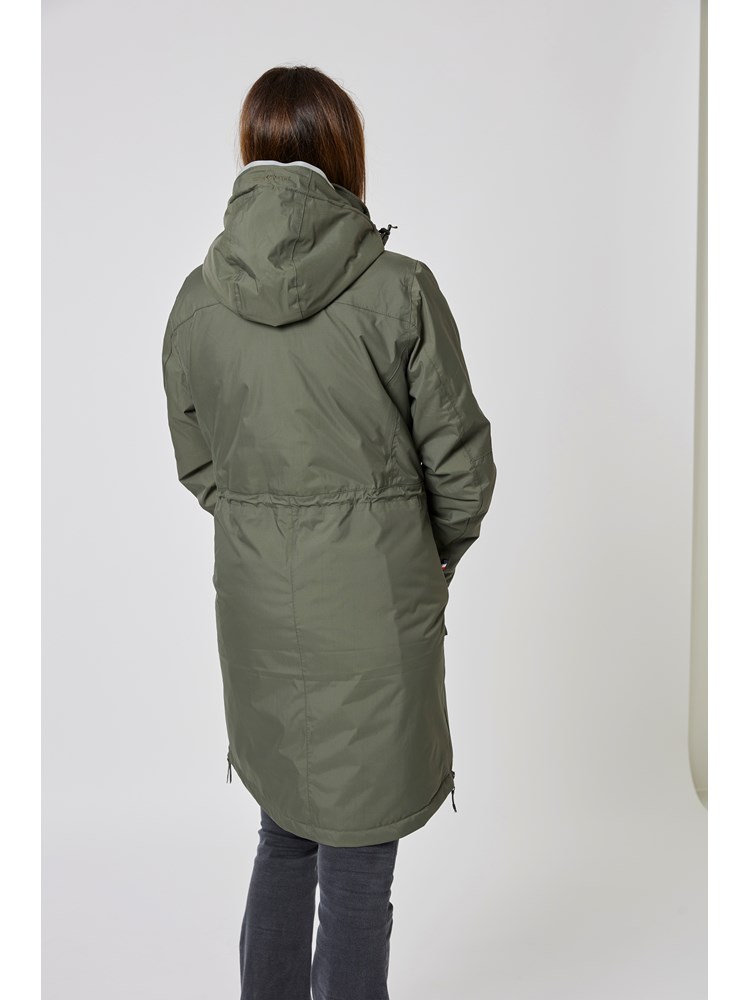 Allsidig vind- og vanntett fritidsjakke i teknisk ripstop strukturmateriale med lett vattering. Den behagelige allværsjakken har god lengde, glidelåser i sidene for bevegelighet, toveis glidelås i front, skjult knepping med trykknapper, myk fleece i kragen, funksjonelle lommer med fleecefôr og mulighet for justering i ryggen. Ton i ton gummibadge og tricoloredetaljer. Praktiske refleksdetaljer på ermkant og på kanten av hetten. Modellen er 170 cm høy og bruker str S.