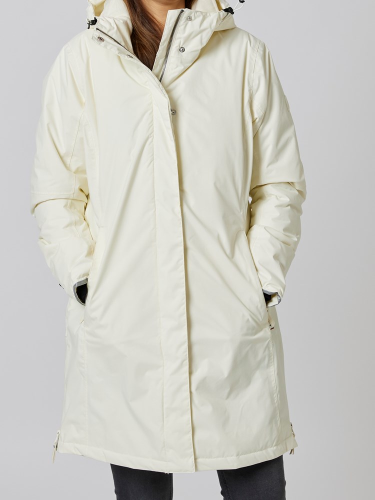 Allsidig vind- og vanntett fritidsjakke i teknisk ripstop strukturmateriale med lett vattering. Den behagelige allværsjakken har god lengde, glidelåser i sidene for bevegelighet, toveis glidelås i front, skjult knepping med trykknapper, myk fleece i kragen, funksjonelle lommer med fleecefôr og mulighet for justering i ryggen. Ton i ton gummibadge og tricoloredetaljer. Praktiske refleksdetaljer på ermkant og på kanten av hetten. Modellen er 170 cm høy og bruker str S.