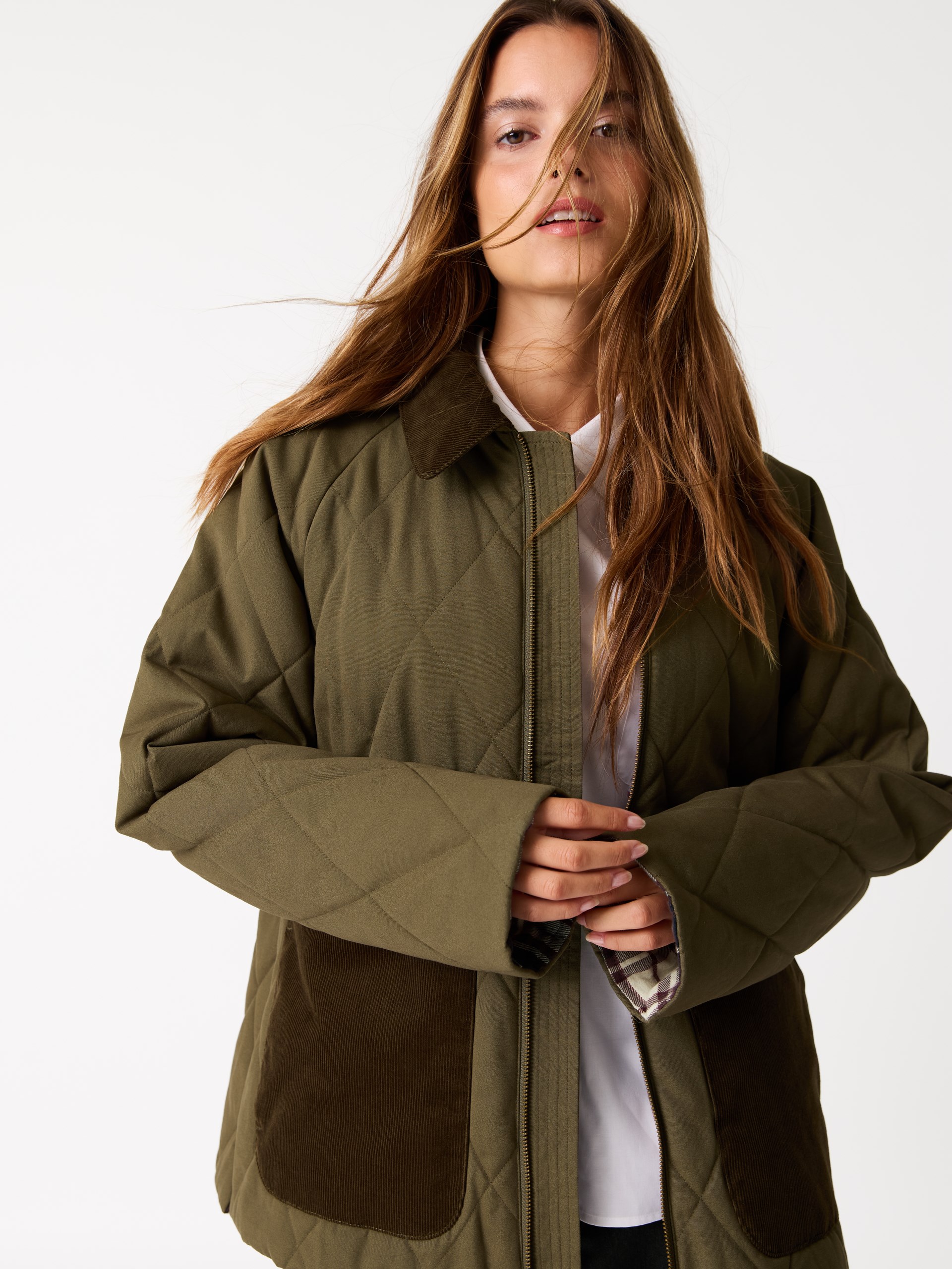 - Krage og doble frontlommer i kontrastfarget cordkvalitet
