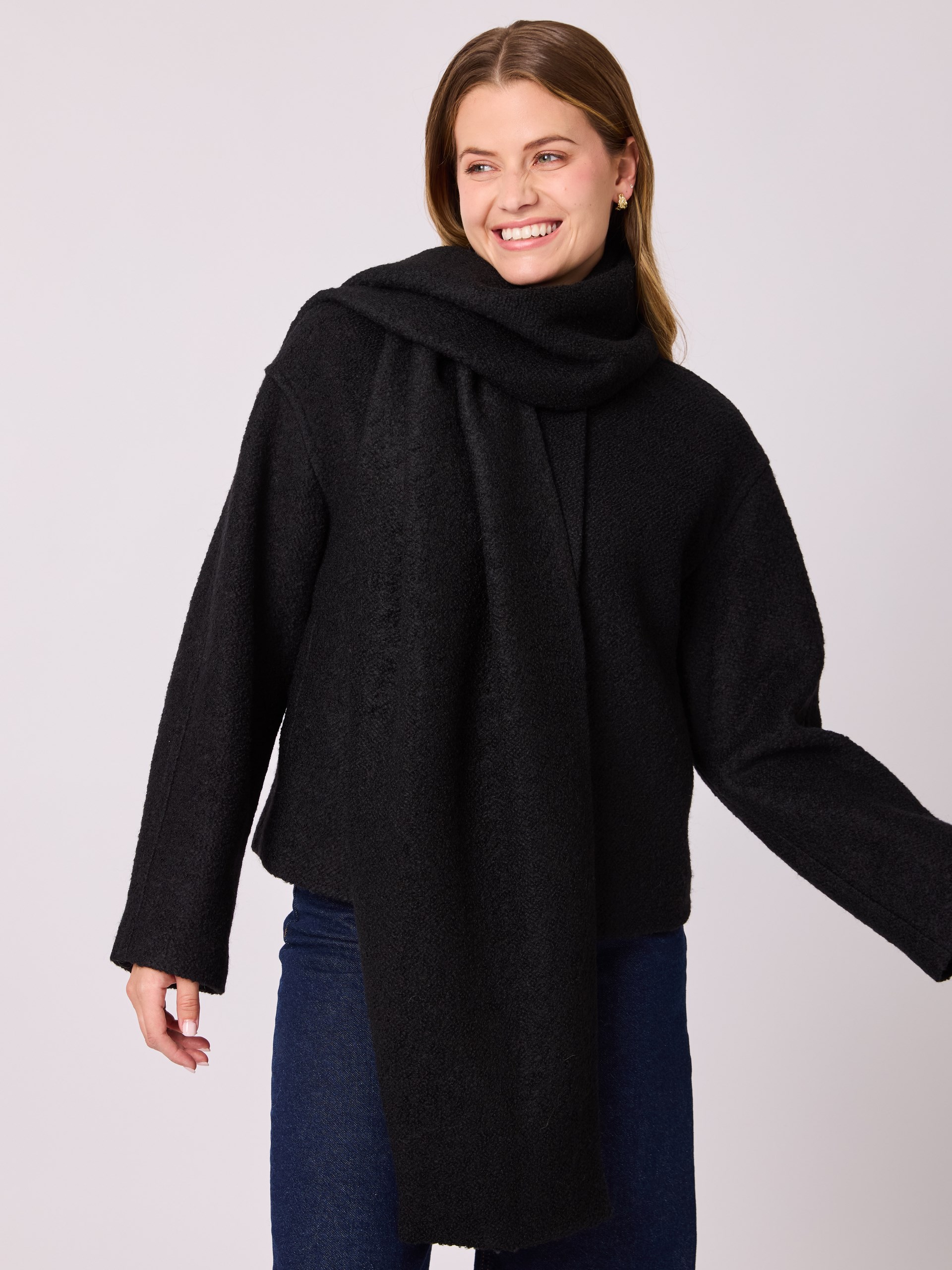 Kort jakke og medfølgende skjerf i bouclè kvalitet