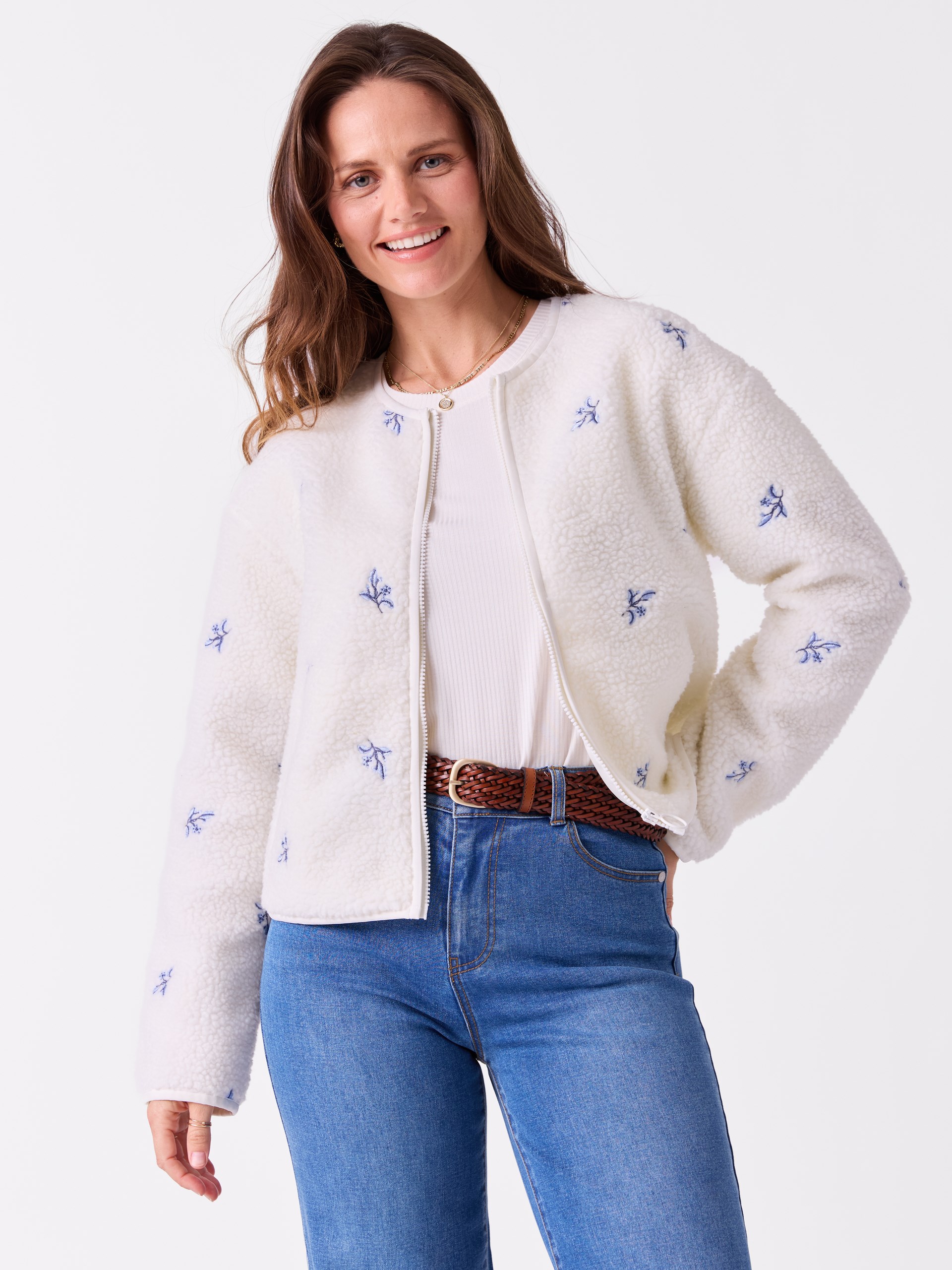 Myk pilejakke med blomsterbroderi