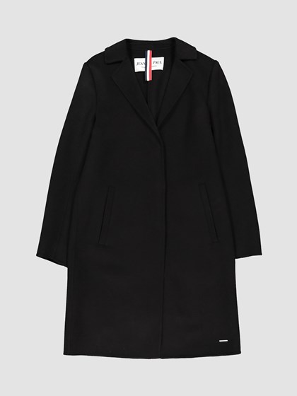 Klassisk kåpe i myk ullblanding. Kåpen lukkes i front med skjulte trykknapper, den har to vertikale stikklommer, forede ermer og liten krage med slag. Diskre sølvfarget metallogo nede til venstre. Modellen er 170 cm høy og bruker str S. Les mer