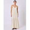 Maxikjole i lett kreppet viskosekvalitet med innvendig fôr og ledig passform. Kjolen har dyp v utringing foran og bak og justerbare skulderstropper