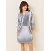Stripet kjole i lett jerseykvalitet med 3/4 lang erm, rett passform og splitter i sidene. Kjolen har stikkommer, krage og v hals, og ett lite logoprint i gummi nede på siden.