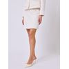 Kort skjørt i strukturert kvalitet med dempet rute med innvevde lurextråder, dekorative råkanter og innvendig fôr. Skjørtet har to fuskelommer med perleknapp og råkant samt hekte og glidelås i siden. Kjøp gjerne med Cassie blazer for komplett sett.