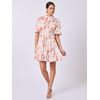 Feminin skjortekjole i sommerlig print med ton i ton knapper, krage og korte ballongermer med fôr. Kjolen har ett vevet knytebelte i livet, og skjørt med innsydde spiler for god vidde.