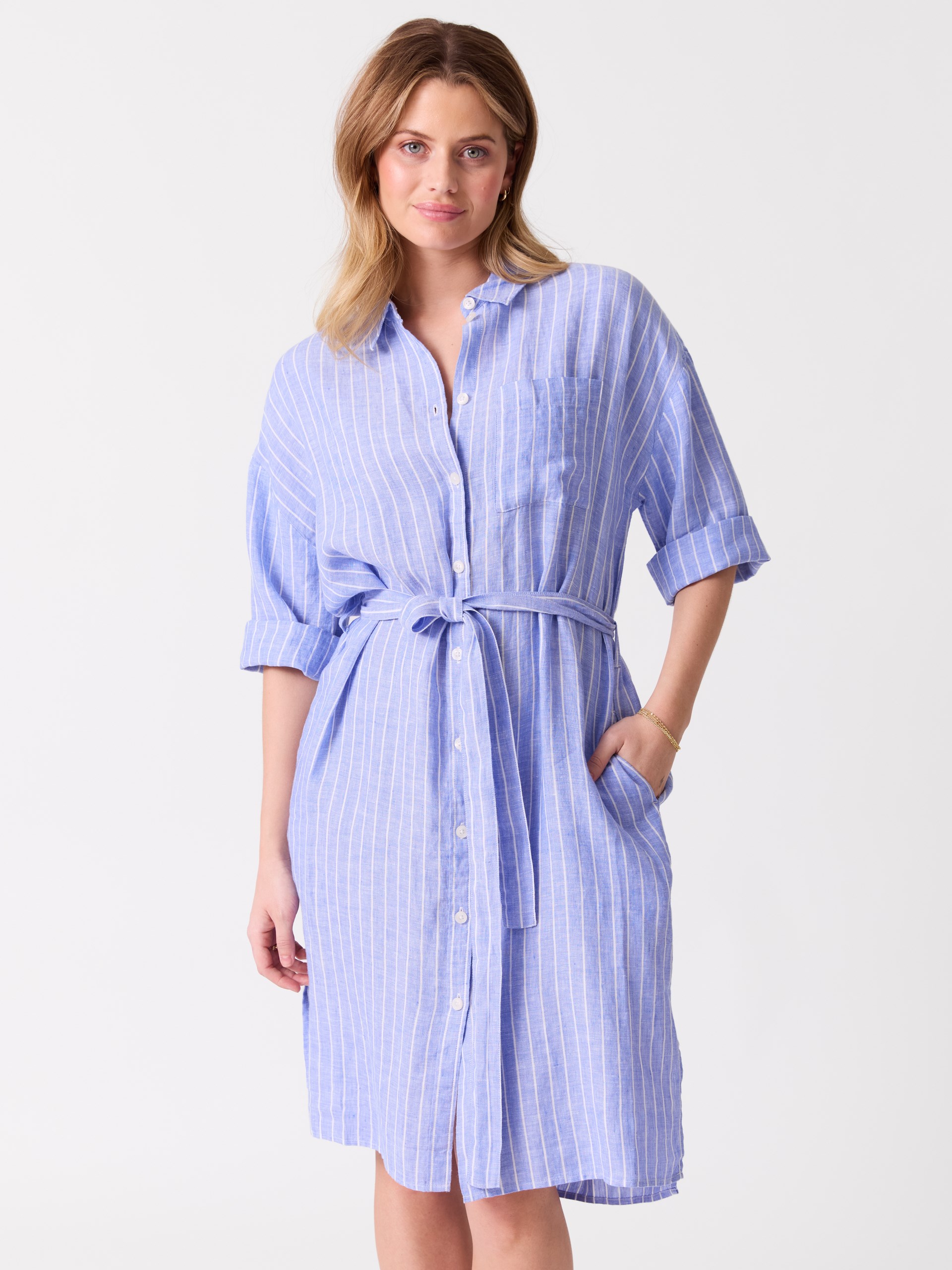 Modellen er 171cm og har på seg str 36Louise linskjortekjole