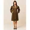 Kjole i bredstripet cordkvalitet med krage og glidelås i front, lang pufferm med vidde og elastikk nederst, samt innsnitt ved brystet. Kjolen har søm i livet og utskrådd skjørt. Normal passform og en liten metallbadge nede på siden. Modellen er 167 cm høy og har på seg str S.