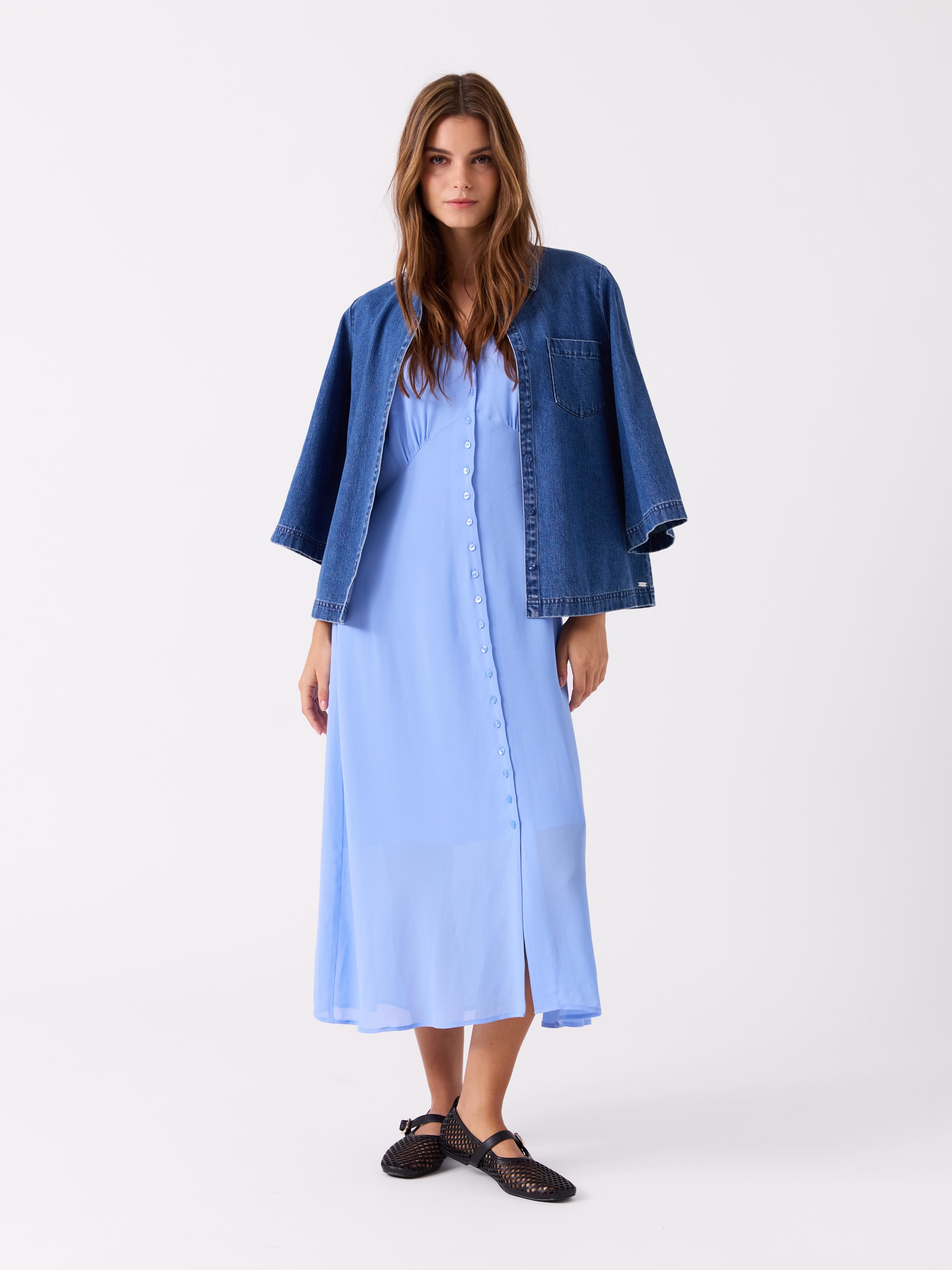 Modellen er 171 cm høy og har på seg str S.Margeau kjole