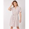 Skjortekjole med v utrining, knappestolpe med lyse hornfargede knapper i front, kort erm, knytebelte i livet og gode lommer i sidene. Kjolen har bærestykke med fold i ryggen, ledig passform og lengde ca til ovenfor kneet.