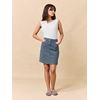 Patty stripet skjørt er laget i stripete indigokvalitet med ett vasket uttrykk. Materialet har en behagelig elastisitet, som gir god bevegelse. Skjørtet har glidelåsgylf og knapp i linningen, samt kontrastdetaljer og en skinnetikett med logo bak i livet. Passformen er ettersittende med lengde til ovenfor kneet