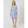Skjortekjole i mønstret lin og bomullsblanding med skjult knappestolpe og skjørt med generøs vidde og innsydde kiler. Kjolen har lang erm med knappet mansjett og ett løst knytebelte i livet. Lengde ca til kneet. Modellen er 176cm og har på seg str 36.