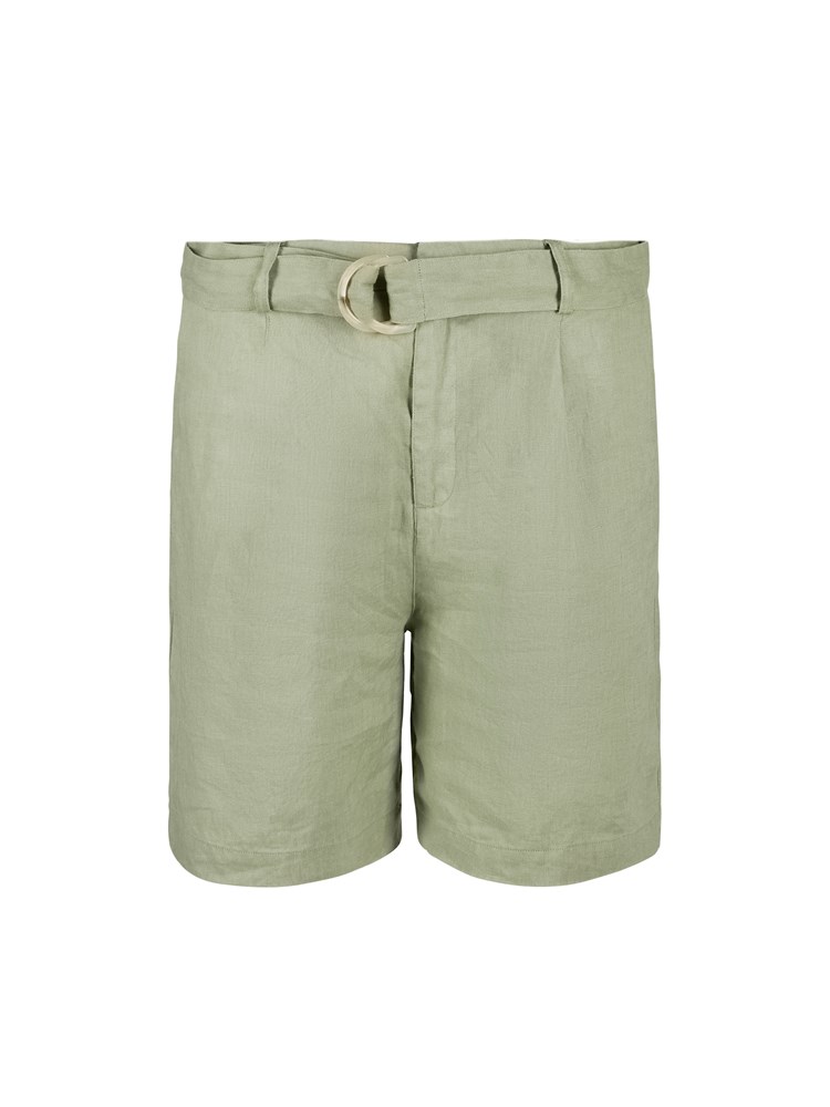 Highwaist shorts i behagelig lin med innvendig fôr og belte med spenne i livet. Shortsen kommer i to ensfargede og en mønstret variant, lukkes med glidelås, hekte og knapp, har små legg og stikklommer i front og en passepoilert baklomme med knapp. God vidde og lengde ca til midt på låret. Kjøp gjerne Clarita linblazer for matchende sett.