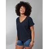 Vevet topp i behagelig lin med avrundet v utringing og en liten erm med oppbrett. Toppen har rett passform og rundet avslutning nederst. Liten sølvfarget logobadge nede på siden. Modellen er 176 cm høy og bruker str M.