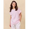 Kortermet topp i behagelig vevet blanding av lin og bomull. Toppen har rundet halsåpning og en liten oppbrett på ermet. Logobagde i metall nede på siden. Ledig passform