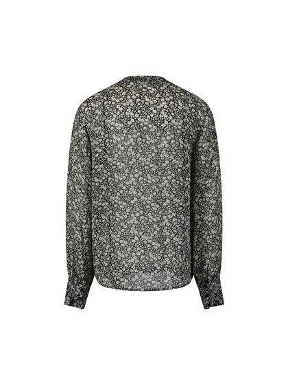 Småblomstret bluse i lett viskose kvalitet. Blusen har panelsømmer foran og bak, rund hals, frontknapping med små svarte knapper, lang erm med volum og høy knappet mansjett.