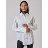 Oversized skjorte i bomullsblanding med krage og gullfargede små knapper i stolpen. Blusen har bærestykke med fold bak, høy mansjett med knapp og buet avslutning nederst. Modellen er 175cm og har på seg str 36.