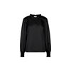 Bluse i lett strukturert satengkvalitet med bærestykke i elastisk vaffelsøm bak. Blusen har v utringing, liten rysjekrage, rett passform og lang pufferm med bred elastisk mansjett.