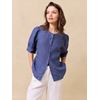 Feminin bluse i komfortabel linkvalitet med trukne knapper i front, rund hals, 3/4 lang pufferm med vidde og liten mansjett nederst. Blusen har rundet avslutning og rett passform.