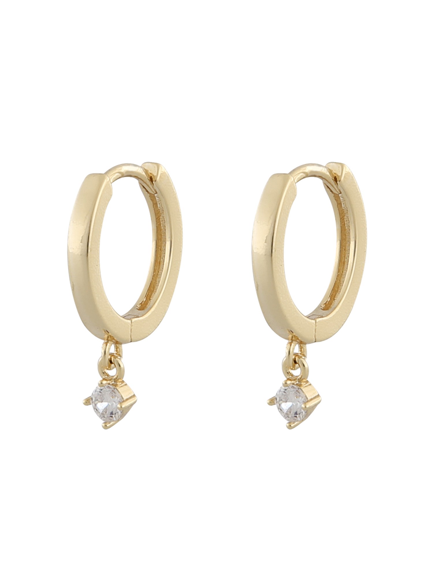 Liten ørering med krystallklar sten i anheng. Str 14,5 mm.