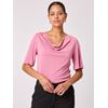 Topp med drapert hals i myk modal blanding. Toppen har kort erm med vidde og rett passform