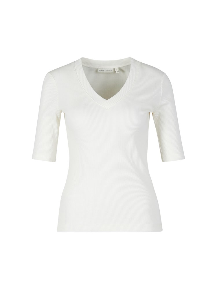Kortermet t-skjorte i lekker ribkvalitet med v utringing og feminin passform.