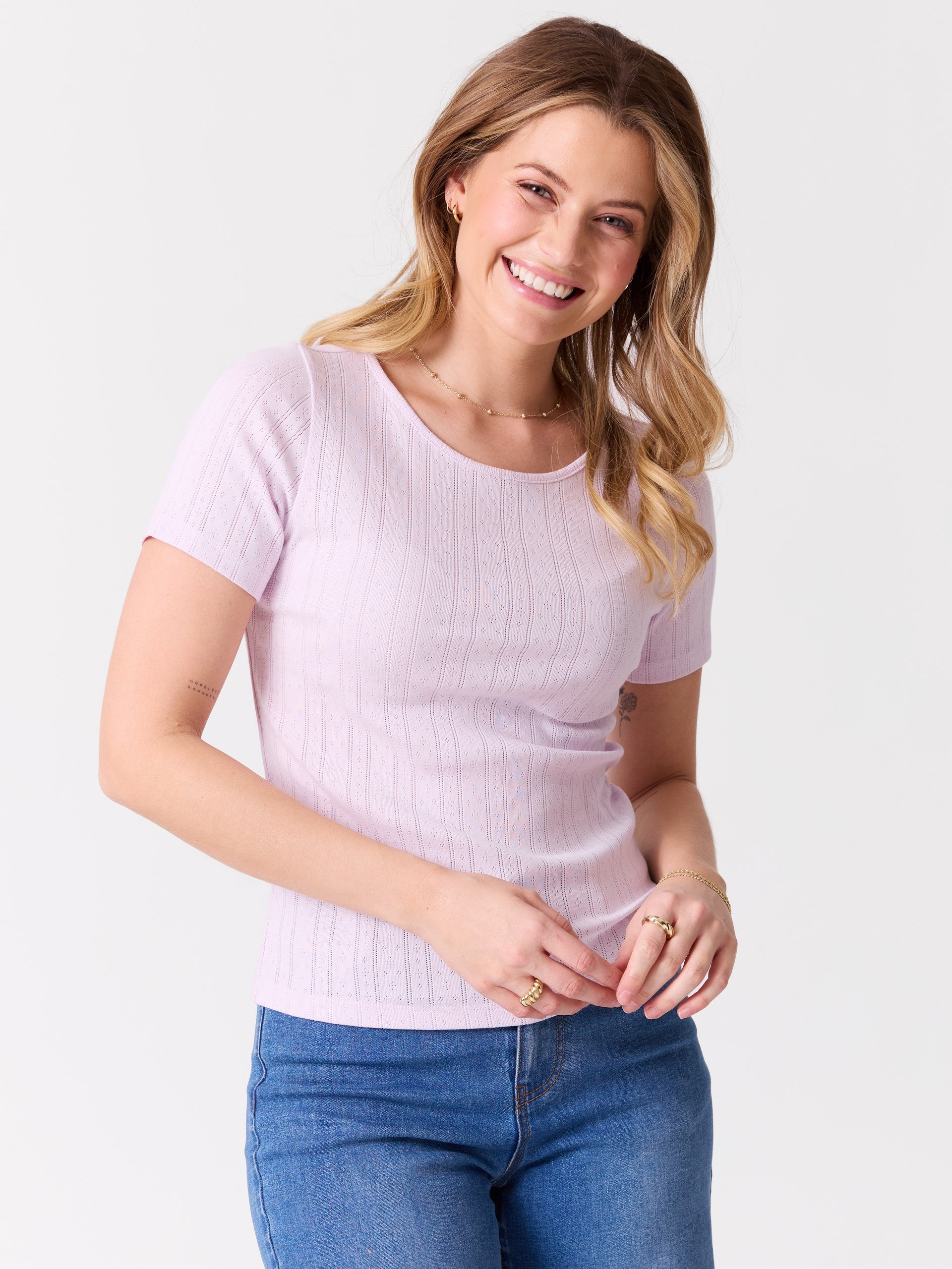 Feminin t skjorte i myk pointellestrikket kvalitet