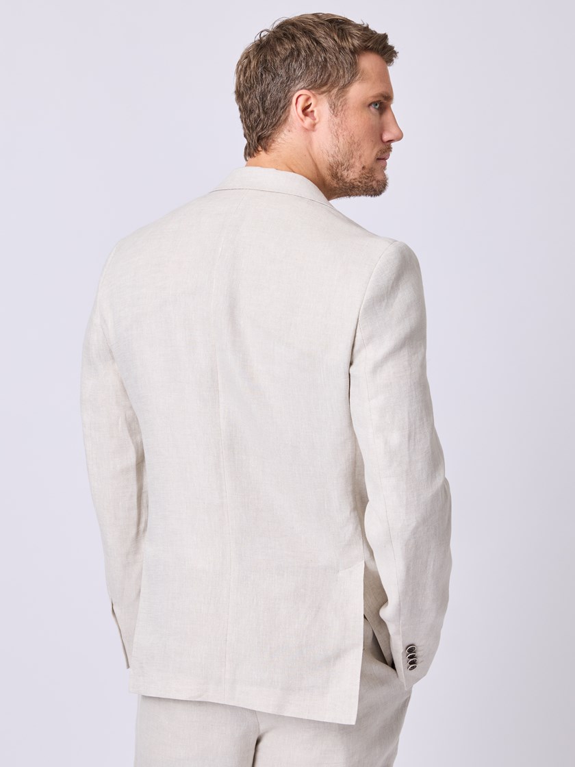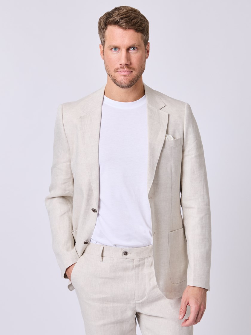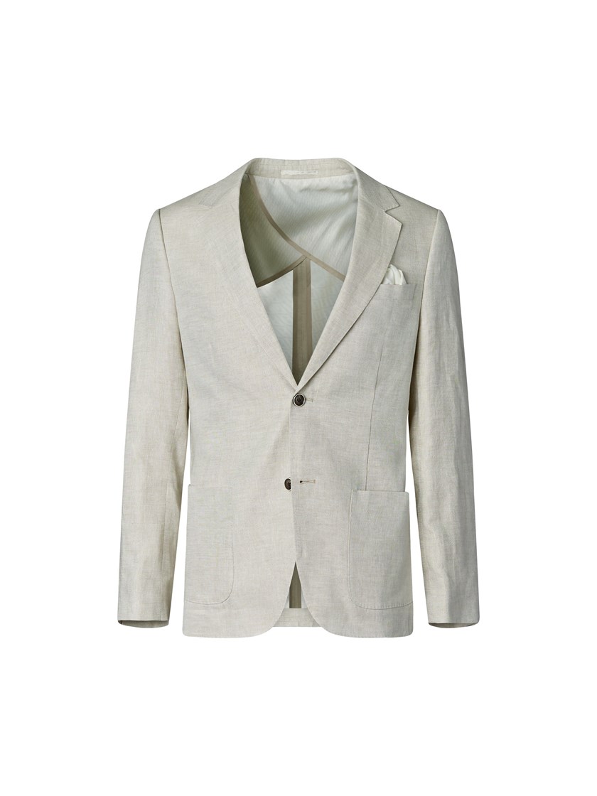 Elegant halvforet blazer i behagelig to tonet lin. Blazeren har 2 hornfargede knapper i front, 4 knapper på ermet, to splitter bak, brystlomme, utenpåsydde frontlommer samt to innerlommer. Smal passform. Kjøp gjerne med Roswell linbukse for komplett sett