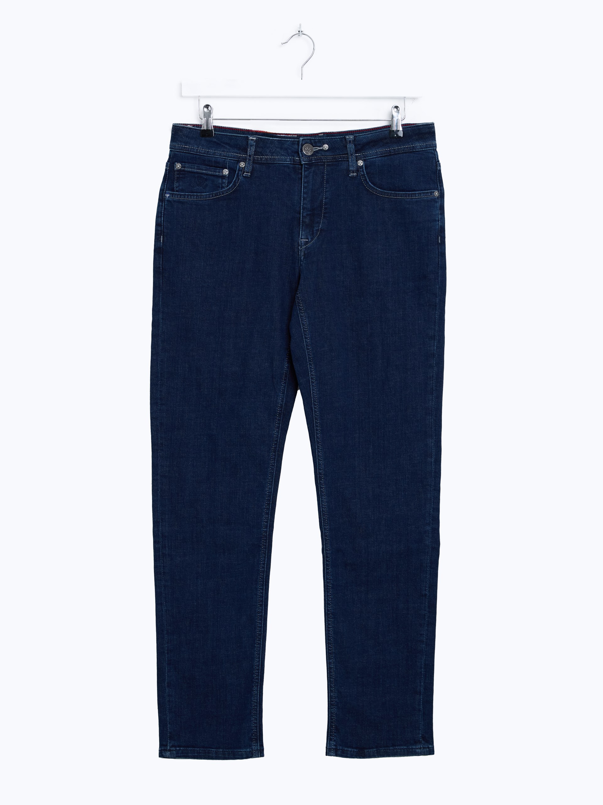 Leroy Deep Blue Stretch er en klassisk 5-pocket jeans i 10 oz mørk blå indigo denim med comfortstretch og et lett steinvasket uttrykk med slitasje jevnt over. Buksen er en "slim fit" med normal setevidde, normal livhøyde og smale ben som passer til de som ønsker en smalere silhuett. Glidelåsgylf med knapp i front og en logobadge i livet bak