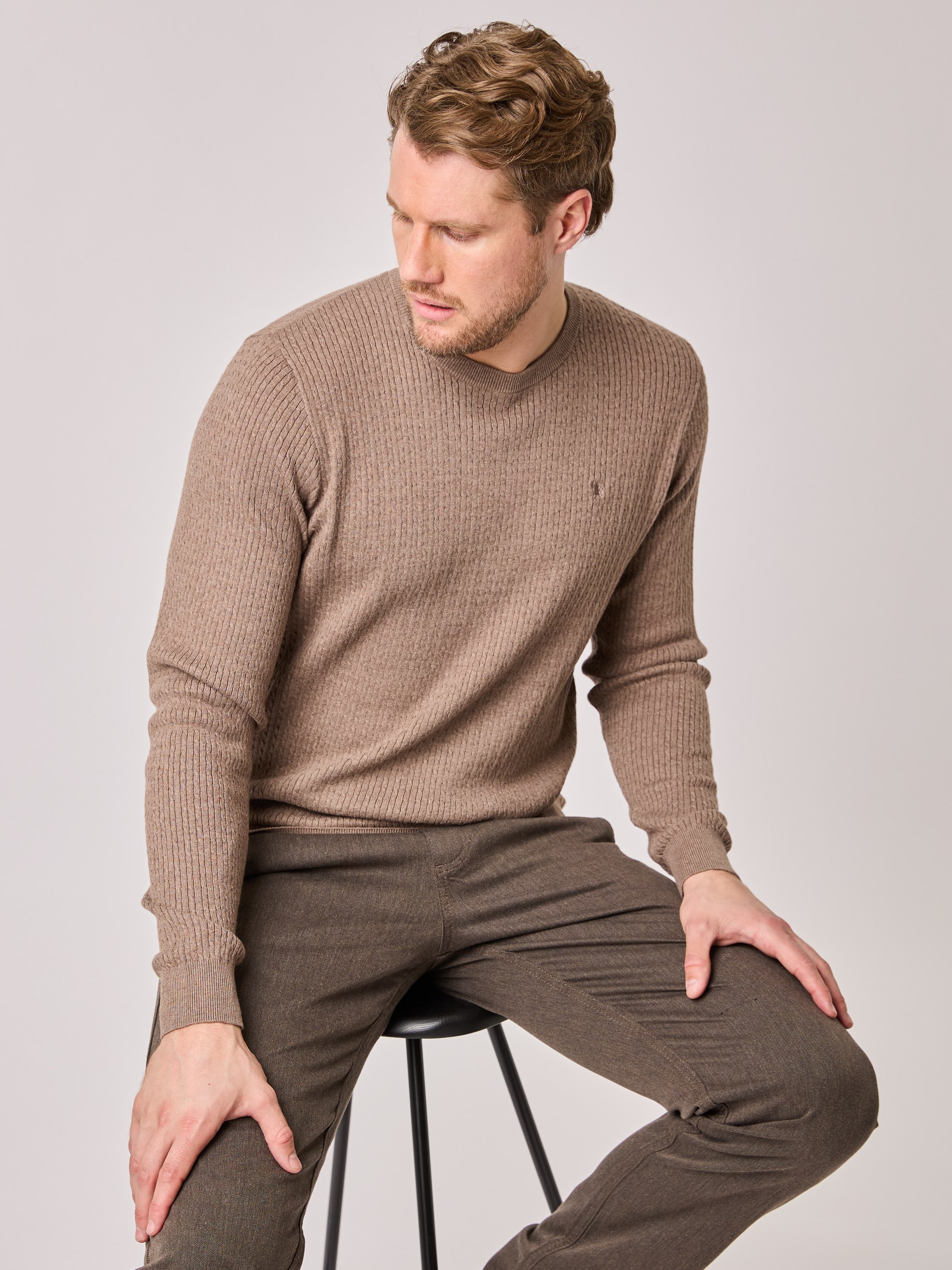 Kabelstrikket genser i komfortabel 100% bomull