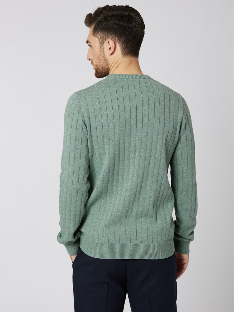 Klassisk genser i finstrikket ribstruktur. Genseren har rund hals, ribbestrikkede vrangborder og en liten tab i siden. Regulær passform.